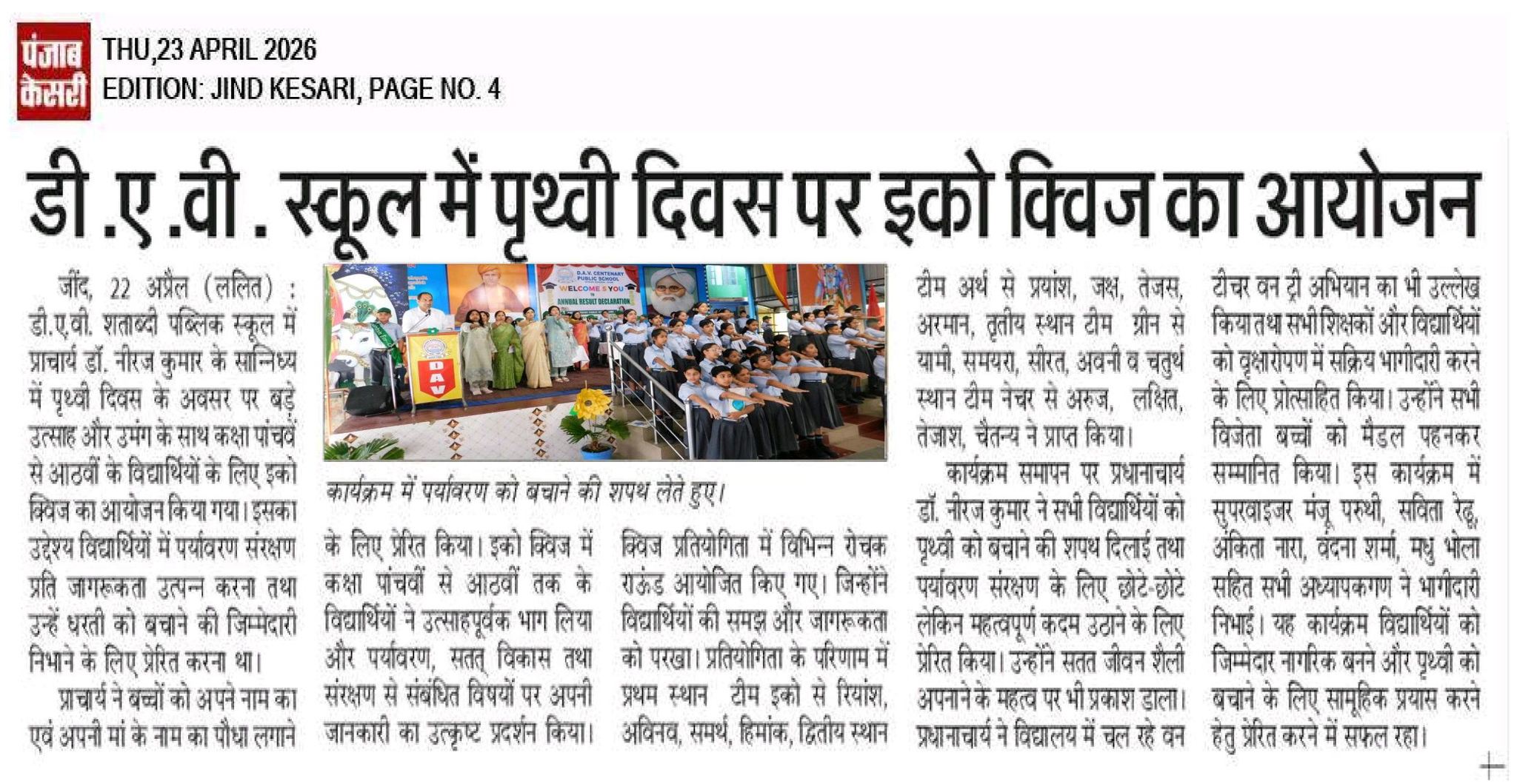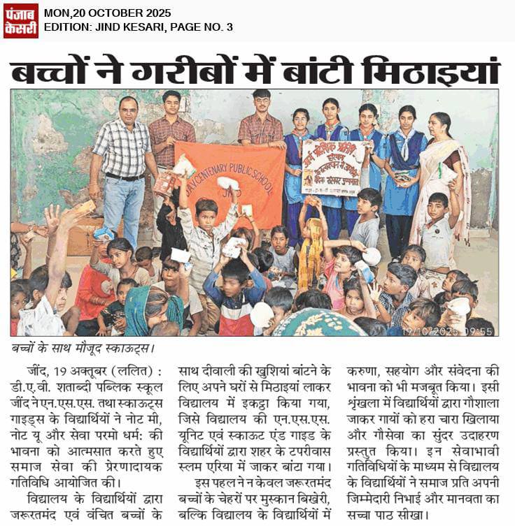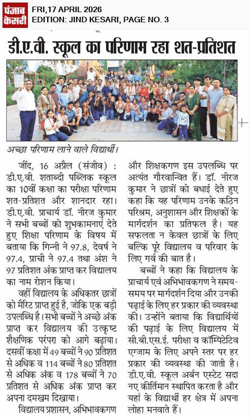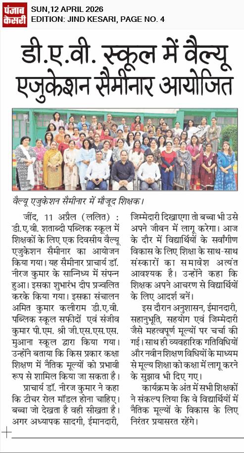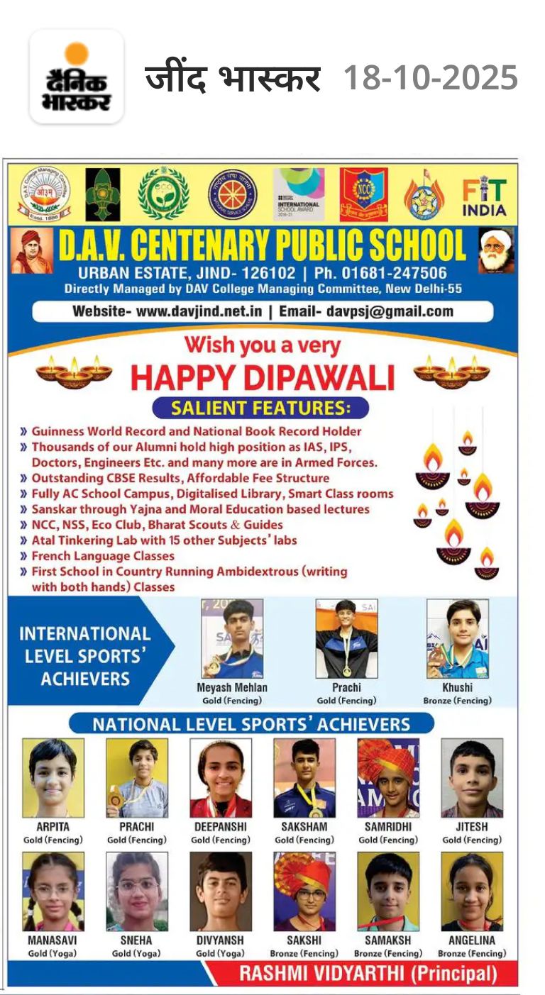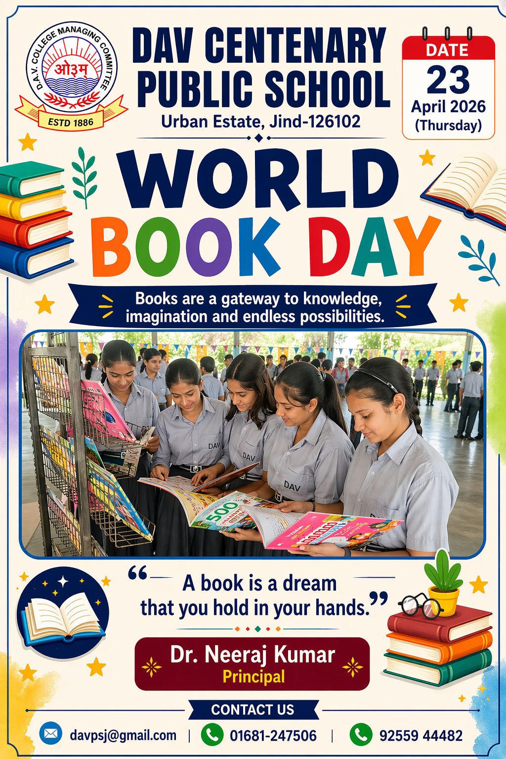 DAV Centenary Public School, Jind was launched in April 1988 to commemorate the centenary of inception of DAV movement. the School functions directly under the control of D.A.V. College Managing Committee, New Delhi. The School is affiliated to the CBSE, New Delhi up to Se. Sec. Level. The School campus is spread