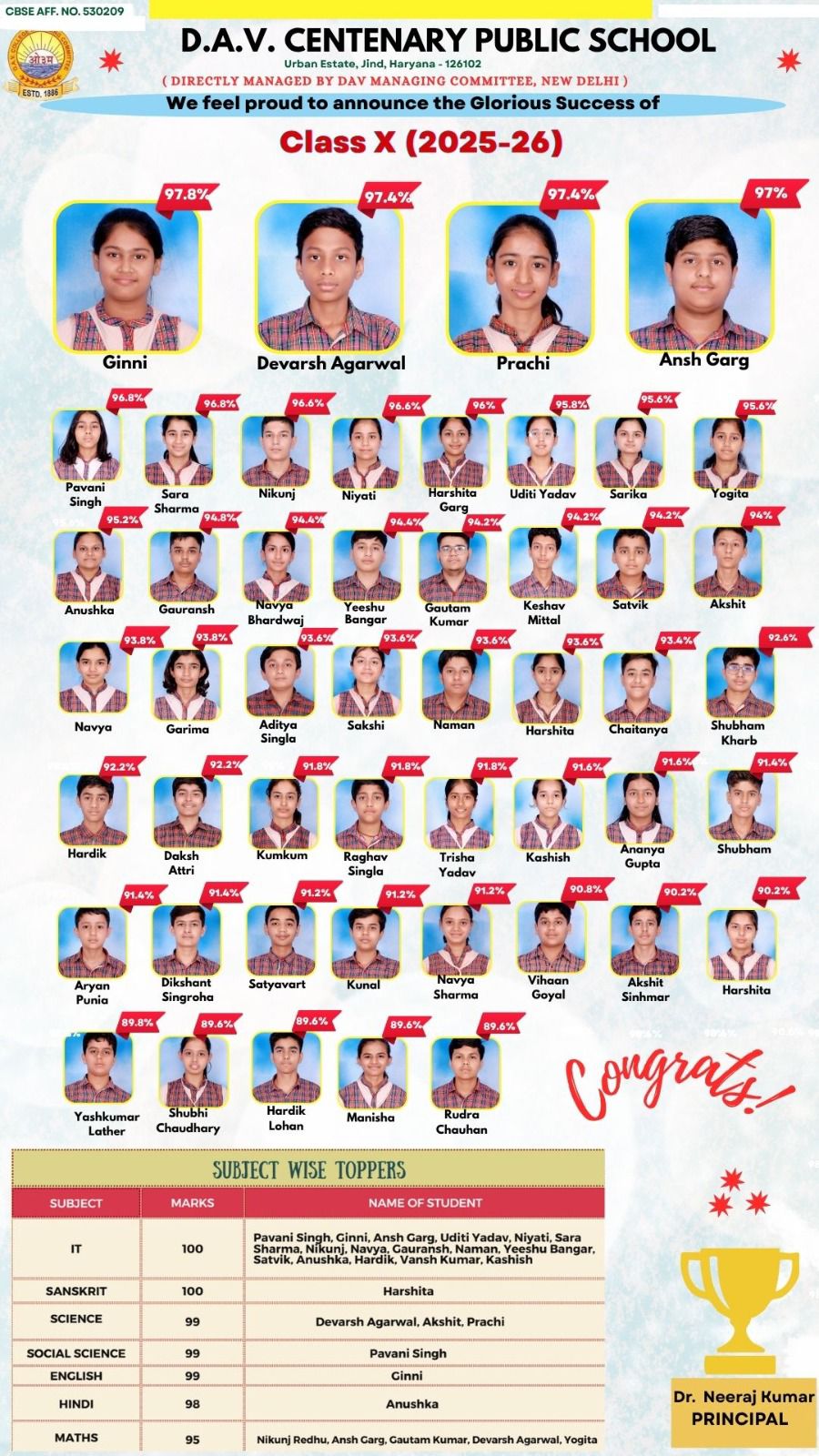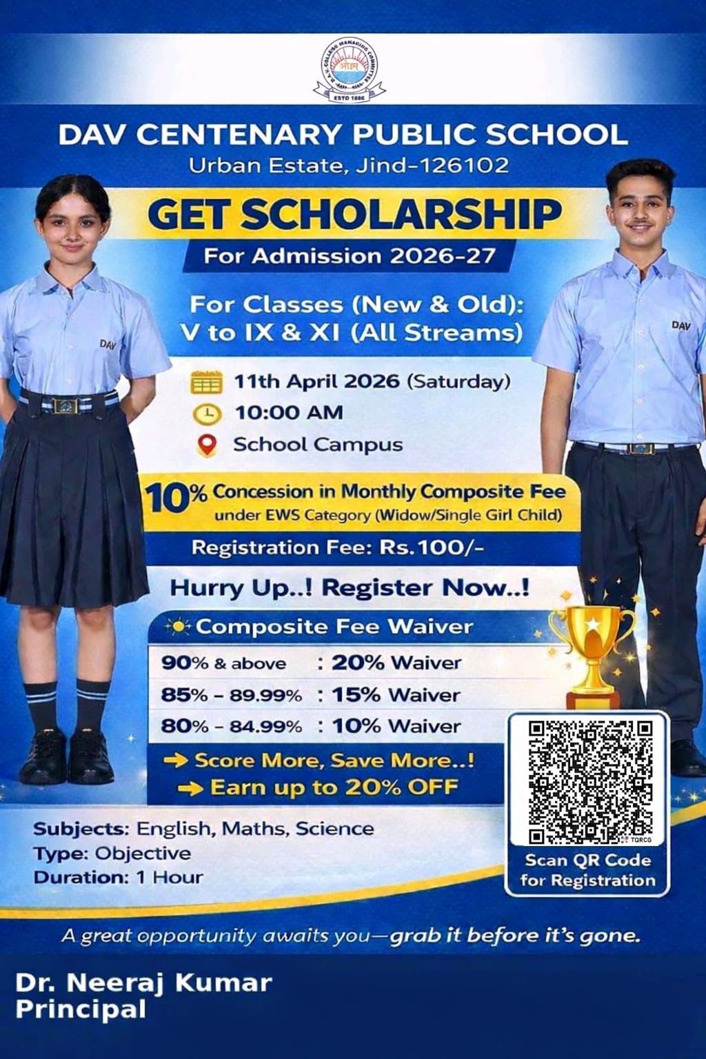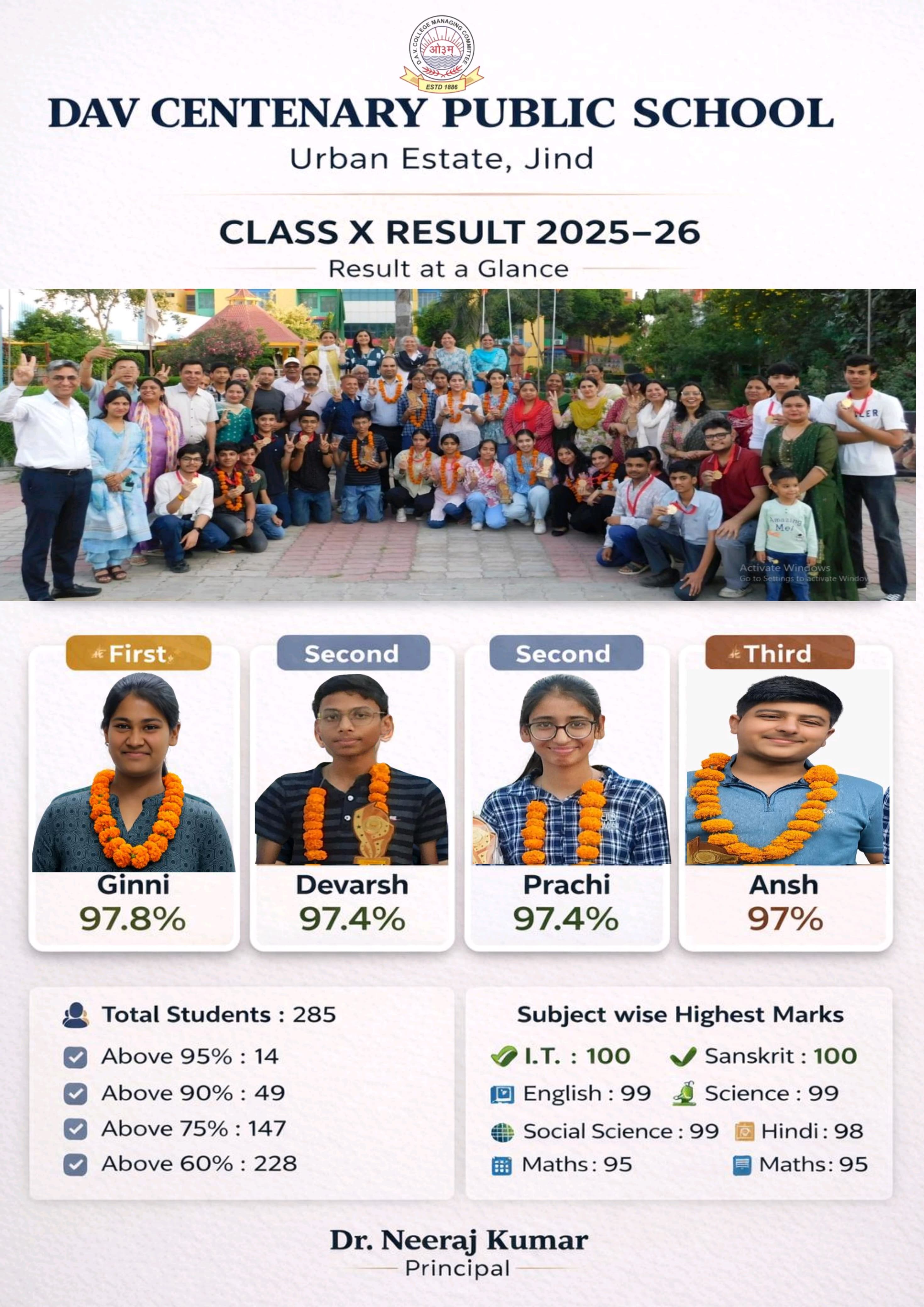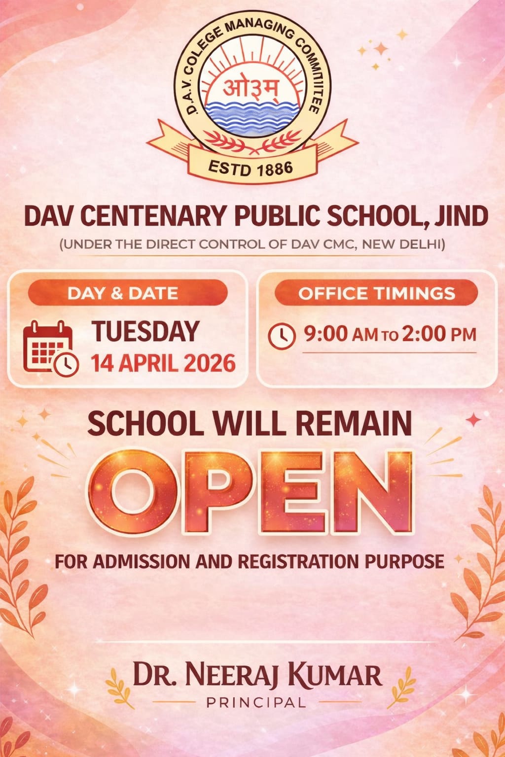 DAV Centenary Public School, Jind was launched in April 1988 to commemorate the centenary of inception of DAV movement. the School functions directly under the control of D.A.V. College Managing Committee, New Delhi. The School is affiliated to the CBSE, New Delhi up to Se. Sec. Level. The School campus is spread